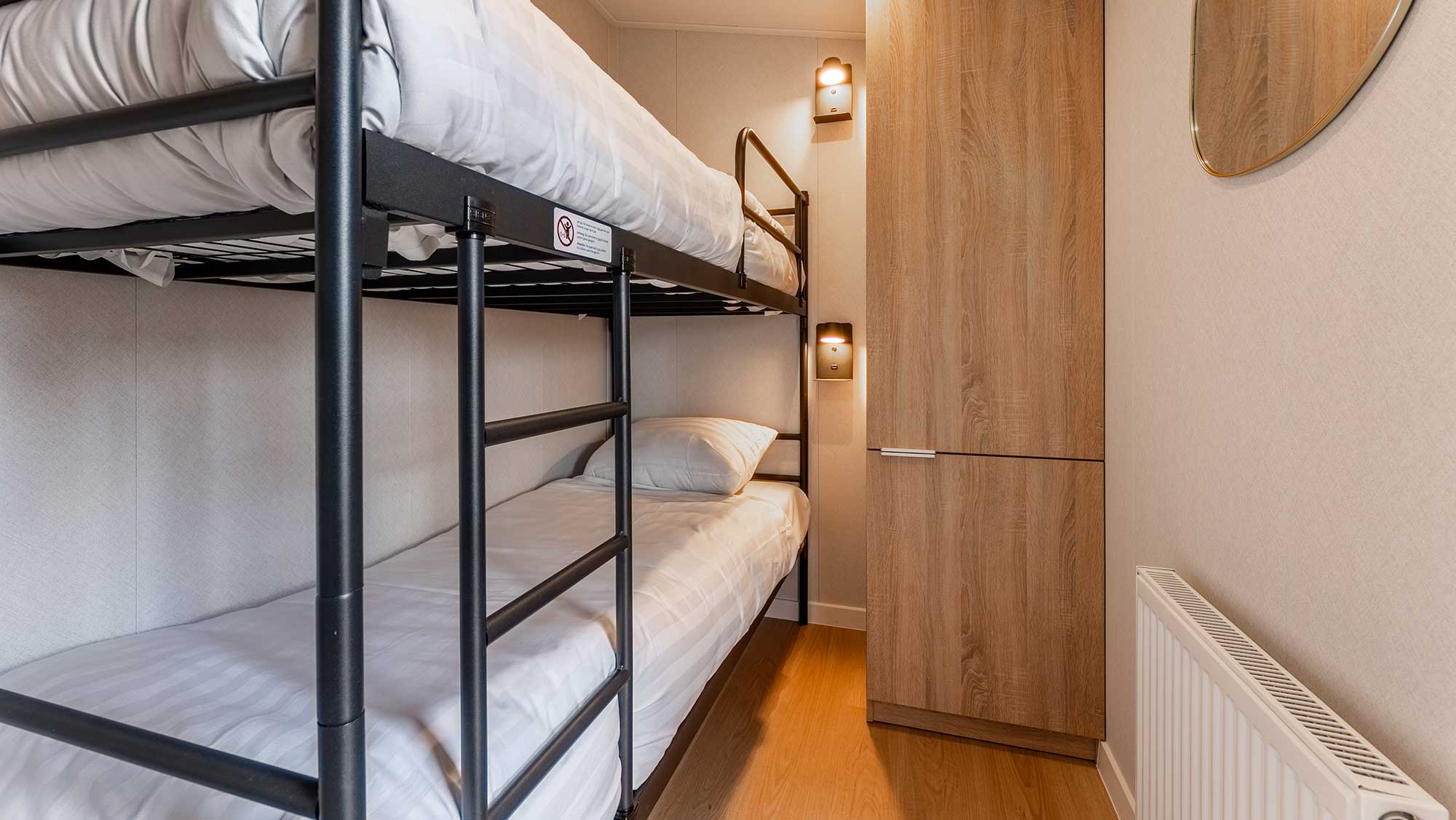 Het nieuwe 6-persoons chalet Watermunt telt drie slaapkamers, heeft een compleet uitgeruste keuken en een knusse woonkamer met open keuken. Vanuit de woonkamer stap je zo de ruime veranda op, een fijne plek waar je samen de dag begint met een ontbijt of juist afsluit met een drankje. Extra leuk: ook je huisdier is welkom in dit chalet!